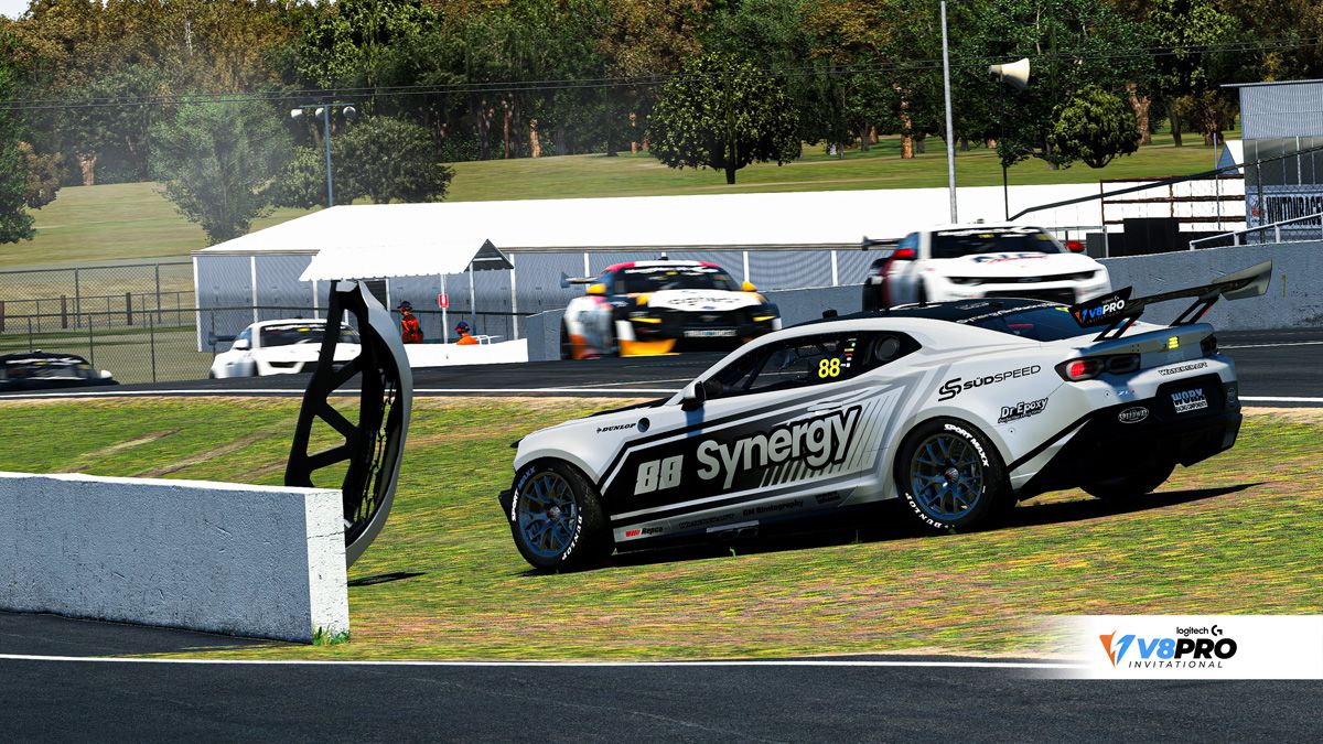 Vermillion eSports’ Tao Soerono was quick to give Jones a hurry-on, bumping the DPR driver wide on the exit of Turn 9. Two laps later, Soerono would pass Jones down the inside of Turn 7.